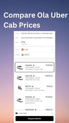 Download Cab now and experience the convenience of comparing and booking Ola and Uber cabs in one place. Say goodbye to the hassle of switching between apps and enjoy a seamless cab booking experience. Whether it's a quick ride to the office or a trip across the city, Cab comparison app has got you covered.