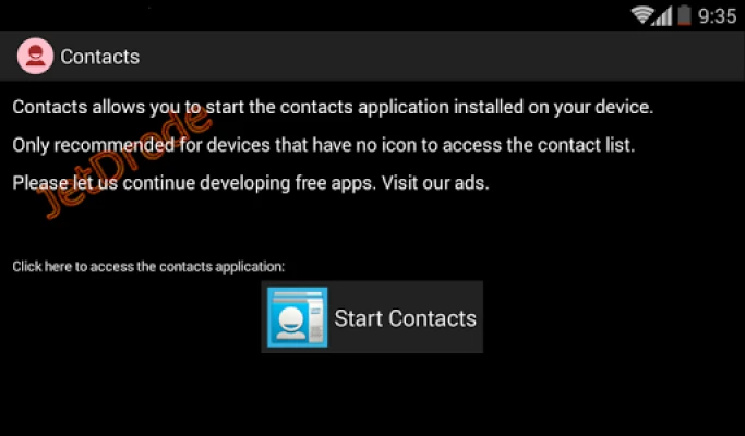 Contacts starts the application of contacts included in your device. Only recommended for devices without an icon to show the list of contacts.