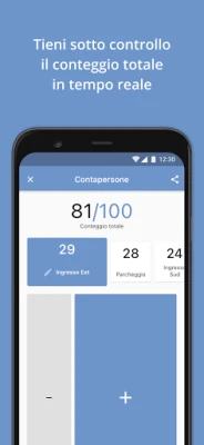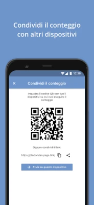 Per iniziare crea un nuovo contapersone, specificando facoltativamente la capienza. Potrai poi condividere il conteggio con altri dispositivi, ad esempio per monitorare più ingressi contemporaneamente, tramite un semplice link o un codice QR. Avrai sempre sotto controllo i conteggi di tutti i dispositivi e il conteggio totale, sincronizzato in tempo reale.