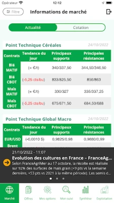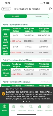 Cette application est un véritable relais de proximité au quotidien, accessible partout et à tout moment. Pilotez votre activité agricole en étant informé des évolutions du marché et en consultant en temps réel les cotations au prix du jour. Faites le suivi de vos assolements et anticipez vos journées ou semaines grâce à des alertes météo et prix personnalisées.