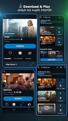 • ακόμα και χωρίς πρόσβαση στο internet, εάν έχεις κατεβάσει το αγαπημένο σου περιεχόμενο στη συσκευή σου! Η δυνατότητα είναι διαθέσιμη για ταινίες, σειρές και εκπομπές (δωρεάν on demand περιεχόμενο ή νοικιασμένες ταινίες).