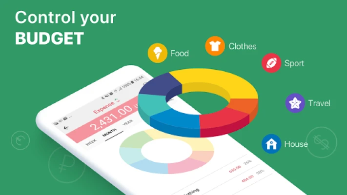 • The app contains more than 25 pre-installed income and expenses categories. You can change, delete, or add new categories to customize them in a convenient way