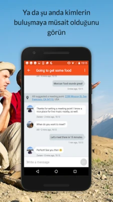 • Bulunduğunuz konuma kimlerin yakın olduğunu ve hemen buluşmaya hazır olduğunu görmek için Couchsurfing