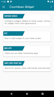 Countdown widget app displays number of days until your next special events.