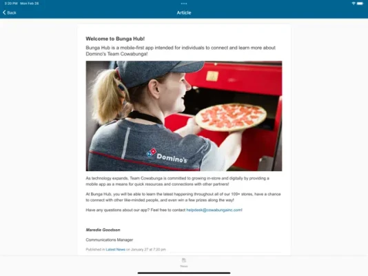 Bunga Hub is the ultimate one-stop shop for all partners to get the latest and greatest news from Cowabunga. App users will utilize the app to communicate and engage with others — you'll know what's going on at all times while having fun! The app offers the following features: chat, blogs/news stories, and resources for members to use.