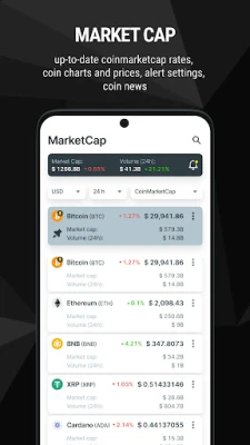 The app provides data on changes in the cryptocurrency market so that Crypto News users always have relevant information about the prices of coins and tokens. Users can find a specific coin by name or ticker: Bitcoin (BTC), Ethereum (ETH), Cardano (ADA), Shiba Inu (SHIB), Solana (SOL),XRP (XRP), Terra (LUNA), Dogecoin (DOGE), Polkadot (DOT), Tether (USDT), BNB (BNB), Polygon (MATIC), Avalanche (AVAX), Cronos (CRO), Decentraland (MANA), VeChain (VET), The Sandbox (SAND), Chainlink (LINK), etc.