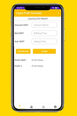 The app can calculate the profit you will make for every trade, you need just to add the bidding price and ask price.