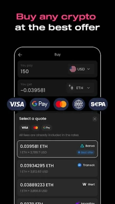 Effortlessly create and manage your cryptocurrency portfolio. 🗂️ Securely store your Bitcoin and other coins in one place, conduct seamless transactions, and trade among an extensive selection of assets. Plus, choose between fixed or floating exchange rates on centralized exchanges (CEX) or enjoy a decentralized exchange (DEX) experience!