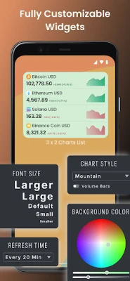 * Customizable Widgets: Tailor your crypto widgets to perfectly match your style. Choose from various sizes (large or small), formats (list or graph), and adjust transparency, colors, fonts, and layout. Resize widgets to fit your home screen perfectly. Switch between Light and Dark modes for optimal viewing.