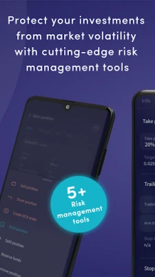 - Risico minimaliseren met een scala aan risicobeheertools zoals DCA, Stop-Loss en Trailing-features.