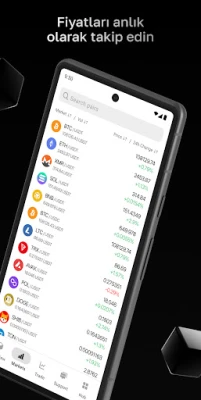 Piyasa ve limit emirleriyle sadece birkaç dokunuşla kripto alım-satımı yapın. Gerçek zamanlı fiyatları takip edin, portföyünüzü yönetin ve mobil erişimle kesintisiz işlem deneyiminin tadını çıkarın.