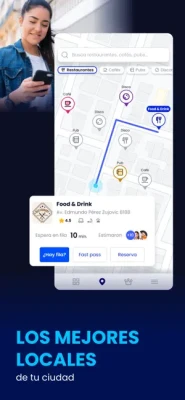 Descubre la primera app creada para ti que te permite ahorrar tiempo y te hace VIP para entrar a tu lugar favorito como restaurantes, pubs, cafeterías y discotecas. Te llevamos a unos pasos para que disfrutes con tus familiares y amigos del sector gastronómico, porque sabemos lo importante que es tu tiempo. Al igual tendrás acceso a conocer la mayor variedad de gastronomía más top de la ciudad.