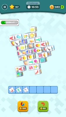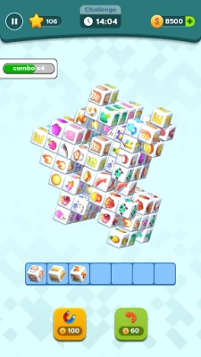 Cube Match 3D Master is a very fun and challenging cube game. Just find and match three identical tiles to clear levels. When you stuck use power to help you clear all tiles even more quickly. The game consists of many levels, which difficulty increases progressively. Take your time and think thoroughly. You can play with your family and friends to relax and exercising your brain to create a good memory.