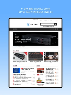 Cuonet 은 한국의 모든 뮤지션들의 커뮤니티이자 포럼 앱으로 현재 11만명의 회원이 가입되어 있습니다.작곡, 작사, 믹싱, 마스터링 등 한국에서 음악을 만드는 모든 사람들을 위해 만들어진 커뮤니티 공간입니다.음악인들의 전문 커뮤니티로서 뉴스, 리뷰, 강좌, 중고 장터, 구인구직 메세지 보내기 등 다양한 컨텐츠와 기능을 제공합니다.1998 년부터 Cuonet 는 그동안 음악인들의 커뮤니케이션 현장이자 교육 현장으로 수많은 아마츄어 음악인들이 프로 뮤지션으로 성장할 수 있도록 돕고 있습니다.