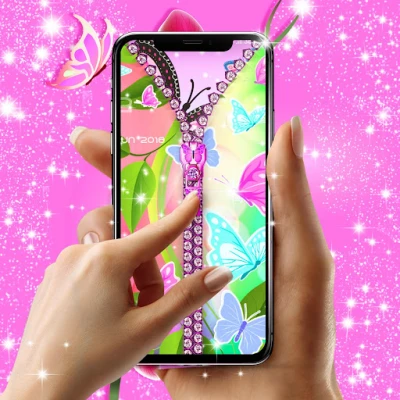 Would you like to unlock your phone in a really unique and customizable way? With our new Cute pink butterflies lock screen, you have the option to choose your own wallpaper for the locker screen and for your device background. Also change the zipper style, color, and design with just a simple click until you find the best combination that works for you.