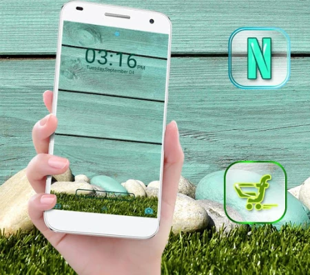 • Decorate your Lock screen with Cyan Wooden Theme Launcher