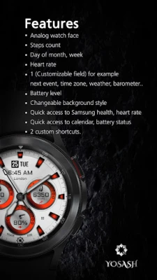 Experience timeless style with this classic analog watch face for Wear OS, designed for those who appreciate elegance and functionality. Featuring 1 custom complication, 2 custom shortcuts, and a wide range of color customization options, this watch face allows you to create a unique look that suits your style.
