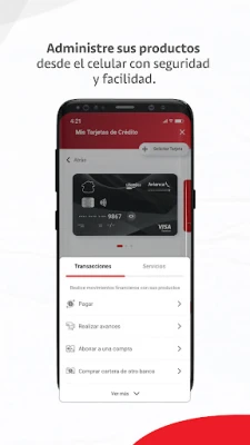 * Gestión de sus productos: active, bloquee o consulte los movimientos de sus tarjetas de crédito y débito.