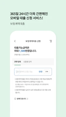 - 보험계약대출 신청/상환, 이자납입계좌변경, 대출송금계좌 신청/변경, 대출현황조회