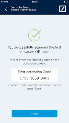 1. Scan QR Code: Using your phone’s camera, a QR-code is scanned on-screen and a numeric response code is provided. The code may be used for logging into a DB banking application or for authorising transactions.