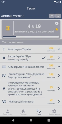 Додаток створений для легкого вивчення, запам'ятовування та повторення питань, за якими відбувається тестування в Державне бюро розслідувань.