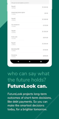 • FutureLook™ helps you see into your financial future with an easy-to-read forecast based on your current choices.
