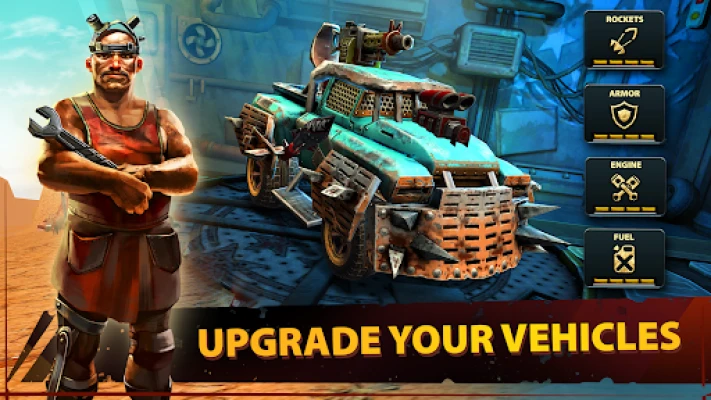 Rakipleriniz her türlü araçla peşinizden gelecek. Seviyeleri bitirin ve garajdaki aracınızı yükseltmek için yarış ödülleri kazanın. Kilidini açmanız için füze yükseltmeleri, zırh yükseltmeleri, motor yükseltmeleri ve yakıt yükseltmeleri var. Yükseltmeler aracınızın hasarını, sağlığını ve hızını artırır. Kazanabileceğiniz ve toplayabileceğiniz başka harika görünümlü canavar kamyon tarzı araçlar bile var.