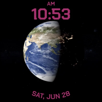 Deep Space saat yüzü ile atmosferin ötesine bir yolculuğa çıkın. Uzaydan görünen Dünya'nın etkileyici animasyonu, gezegensel hareketi ve yıldızlarla dolu derinliği bileğinize taşıyor. Temiz dijital saat ve tarih düzeniyle estetik ve işlevi birleştirir.