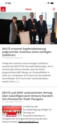 DEUTZ Mobile - für Fans, Freunde und Mitarbeiter der DEUTZ AG. Diese App hält alle auf dem Laufenden. Ob spannende Unternehmensnachrichten oder Informationen zum Unternehmen und Standorten, von nun an ist all das in der App zu finden.