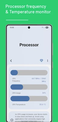 Cihazınızın donanımını yakından takip edin. İşlemcinizin (CPU) frekansını, anlık kullanımını ve sıcaklık değerlerini görüntüleyerek aşırı ısınma ve performans düşüşü riskleri hakkında bilgilenin. Bellek (RAM) kullanımını inceleyerek hangi uygulama ve servislerin daha çok kaynak kullandığını tespit edin.