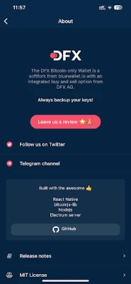 DFX Bitcoin Wallet allows you to store, send and receive Bitcoin with a focus on security and simplicity. You own your private keys at all times. Bank to Wallet, Wallet to Bank.