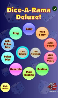 Dice-A-Rama Deluxe contains the original five Dice-A-Rama dice games as well as five brand new ones. In addition to the two Yatzy games in the original, there are two new variations with "WILD" dice. You also get a new Poker Dice game with wild dice, an exclusive game called "Maxi Destino", and a really frustrating quick-playing game called "Crag".