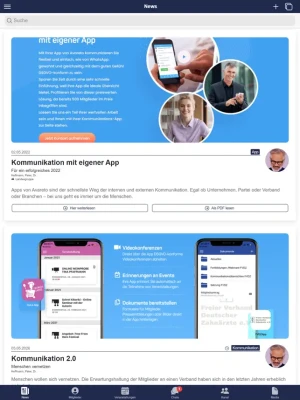 Organisieren Sie Ihr Verbands- und Vereinsleben vollumfänglich digital: Verwaltung aller Mitgliederdaten, Erstellung von Projektgruppen, Organisation von Veranstaltungen mit Zu- und Absagen, Einzel-, Gruppen und Organisations-Chat, Bereitstellung von Dokumenten, öffentliche Fotopinwand und vieles mehr...