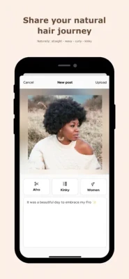 - Share your natural hair journey - Learn more about your natural hair type - Connect with natural hair enthusiast - Find your favorite hairstyle