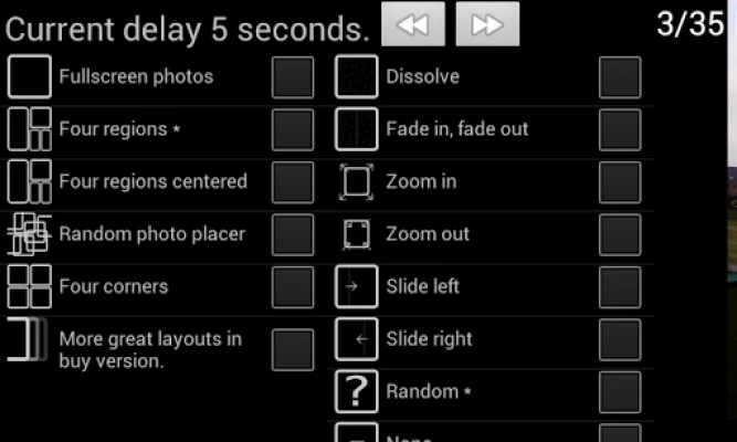 Turn your android device in a digital photo viewer showing a slideshow of local files, photos from network shares (samba/smb). The photos can also be selected from your Flickr or Dropbox account.