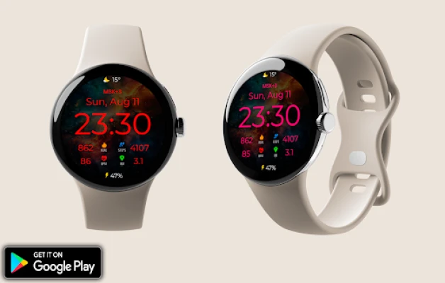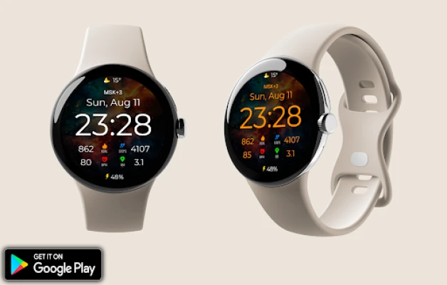 Watch face information: To change the look of the watch face, use the settings •Change color. Use the watch face settings to change the color •The dial supports 12h/24h automatic time format switching •Use watch face settings to set the weather •Use dial settings to change km/ml •Display digital time •Date display •Battery charge display •Display of steps taken •Display Kilocalories •Heart rate •Multilingual •AOD mode