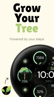 A modern, elegant simple digital watch face for Wear OS with a growing tree that reflects your steps. Includes customizable colors, complications, and a clean layout.