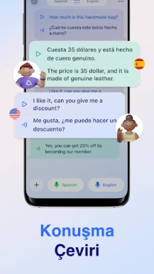 - Konuşma Modu: Doğal iki dilli diyaloglar için çift yönlü çeviriler.