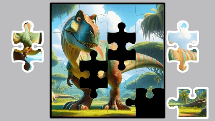 Dino Puzzle is a fun game for kids. Each puzzle has 16 pieces. The game has 50 different levels. Each level has the same difficulty. Kids can play and learn at the same time. The puzzles show cute dinosaurs. The game helps improve memory. The puzzles are colorful and easy to use. Children enjoy finishing each level. Dino Puzzle is both fun and educational.