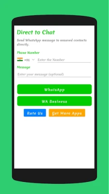 Direct to Chat for Android!. Without saving the contact, user will be able to reach the contacts.