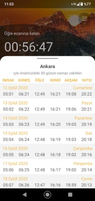 - Aylık namaz vakitleri listesi içermektedir.