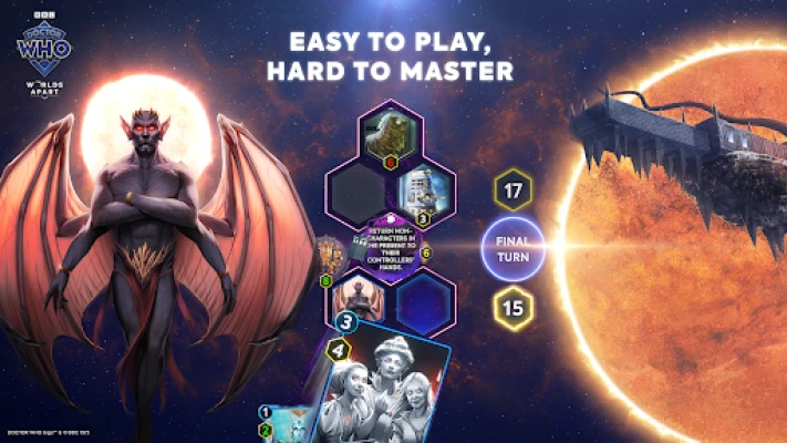Step into the Whoniverse with "Doctor Who: Worlds Apart" — the fast, fun collectible trading card game that lets you collect, build and play with your favourite characters on your mobile device. It is your chance to strategise, outsmart and outwit opponents in dynamic World Clashes!