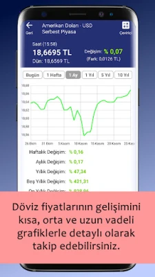- Döviz fiyatlarının gelişimini grafiksel olarak takip edebilirsiniz.