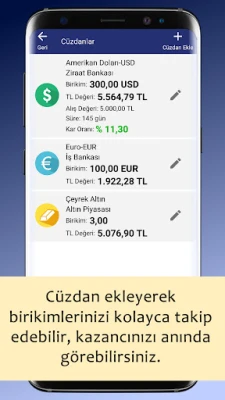 - "Cüzdan" ekleyerek, birikimlerinizi uygulama ekranından kolayca takip edebilirsiniz.