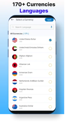 Döviz Kurları Dönüştürücüsü, sanal ve daha az bilinen para birimleri de dahil olmak üzere Dolar, Euro, Pound, Yen, Yuan, Won, Ruble, Peso, Rupi, Dinar, Riyal ve daha birçok para birimini içeren kapsamlı bir para birimi yelpazesini içerir.