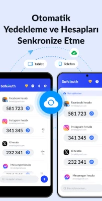 SafeAuth, hesap yedekleme ve senkronizasyonu destekler, böylece tüm kodlara farklı cihazlardan erişebilirsiniz. Verilerinizi buluta yedeklemek ve senkronize etmek için yalnızca Google hesabınızla oturum açın; veri kaybı veya hesapları yeniden bağlama zahmeti konusunda endişelenmenize gerek kalmaz.