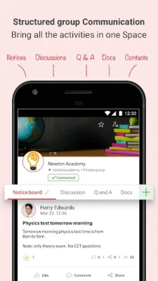 Create a Dome, add your contacts as members and customize! You may choose from our ready made cards such as Notices, Discussions, Q & A, Documents, Contact list, Blog and many more.