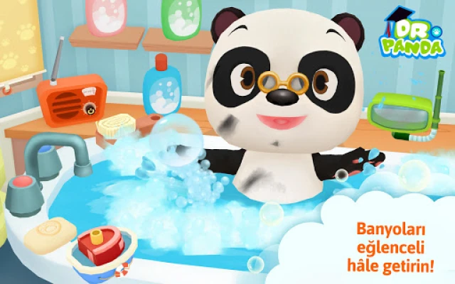 Dr. Pamda Banyo Zamanı'nda Dr. Panda'nın arkadaşlarına temizlenmeleri için yardım edin; onların, parlak kişiliklerini nasıl ifade ettiklerini izlerken, bir taraftan da hijyen uygulamaları konusunda bilgiler edinin ve bol bol eğlenin! Küvette şnorkelli maceralara atılın, hayvanlara renkli, sabun baloncuklu sakallar verin veya sihirli bir kurutma makinesiyle kurulanın!