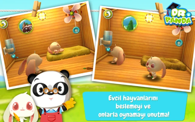 Bu arada, Dr. Panda kapı önünde yaşayan sevimli tavşanları bakıp beslemeyi unutma!