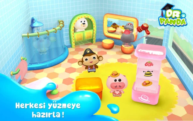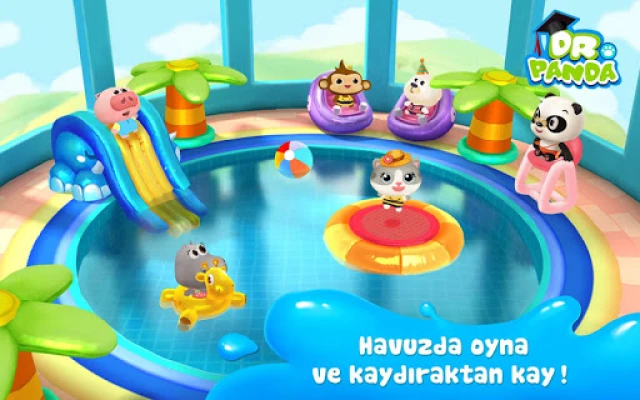 Dr. Panda'nın Yüzme Havuzunda beş şirin yavru hayvanla havuz keyfi yaşa! İçinde yüzebileceğin üç büyük havuz ve ilgilenebileceğin beş hayvan var; yani eğlence hiç bitmiyor. Soyunma odasında kıyafet giydirme oyunu oyna, havuz kenarında bir şeyler atıştır, su kaydırağından kay ya da bir korsan gemisinden denize dalıp gizli hazineyi bulmaya çalış!